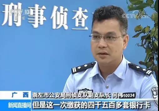 广西崇左市公安局刑侦支队副支队长 何伟:在平时办案中我们也侦破过类似的,就是贩卖银行卡的窝点,一般来说一百多套,或者两三百套已经算很多了。但是这一次缴获的四千五百多套银行卡和六百多套的企业对公资料,那在国内应该是相当罕见的。